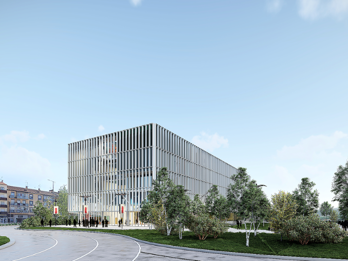 ממוקם בכניסה הצפונית של העיר ליד המגרש, חומרי המרכז ישקפו את הפונקציות הפנימיות שלו באמצעות שינויי צבע עדינים שנוצרו על ידי זכוכית כהה.