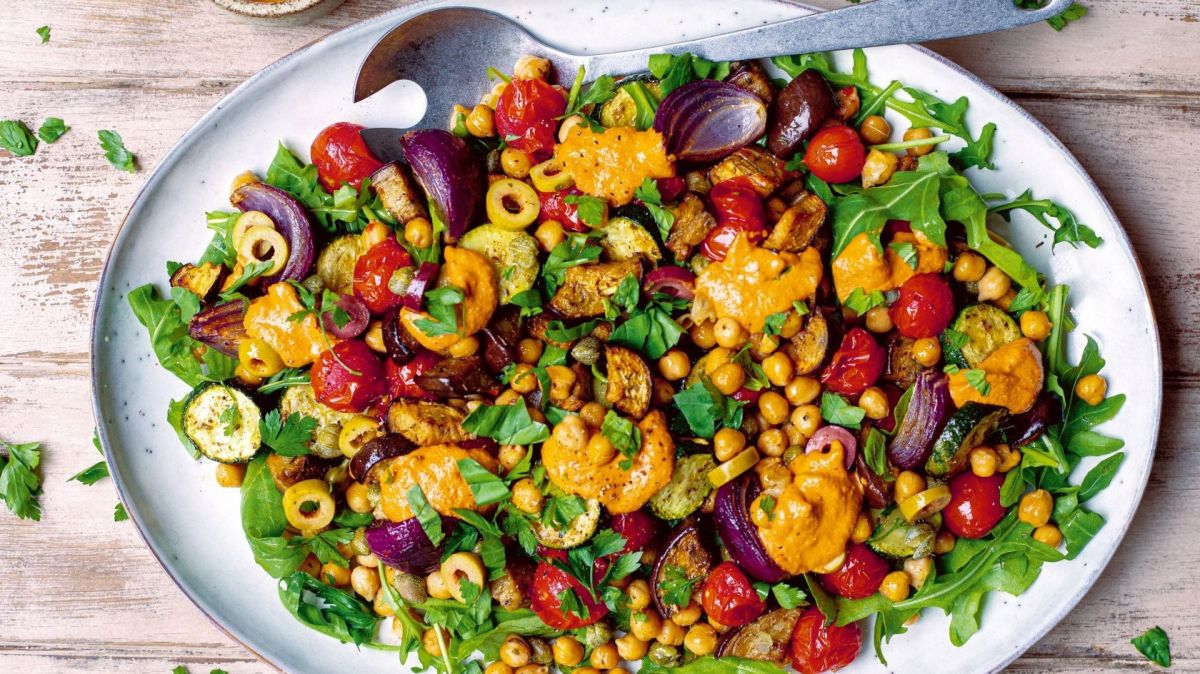 arrange the roasted veggies on top. Scatter with pomegranate seeds and