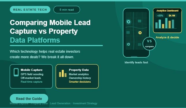 Mobile lead capture & property data platforms fall in different phases of the investment workflow. Mobile tools are designed for rapidly pinpointing and capturing opportunities, while data platforms aim at analyzing property information prior to making decisions. The speed of mobile applications enhances and their accessibility together allows investors to capitalize on an opportunity in real time. Data platforms provide depth and structure, enabling professionals to think more about the market environment and financial potential. Recognizing these distinctions gives investors a way to choose solutions that work side by side with their strategy and avoid the "one tool for every task" hazards. Where mobile tools are quick to capture opportunities, data platforms take a closer look at those opportunities by providing insights that will lead you through the decision-making process more widely.