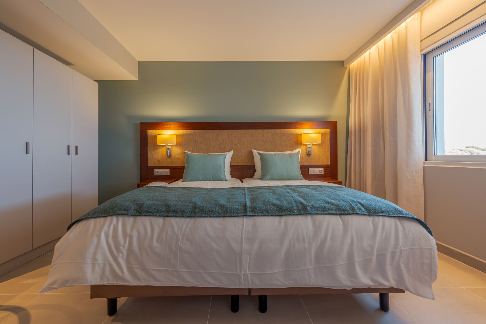 Créditos: Imagem fornecida; Nos quartos, foram incorporados "elementos tradicionais da cultura portuguesa e combinados com um estilo moderno - sem comprometer o padrão comprovado da Hapimag. A decoração reflecte as cores do Algarve, é luminosa e marítima, com materiais naturais que exalam glamour costeiro e elegância moderna. Um destaque é o serviço de mesa especialmente selecionado para o resort: inspirado na cultura local e produzido de forma sustentável, faz de cada refeição uma experiência."